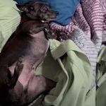 - 「困った…」絶対にベッドから起き上がろうとしない犬(動画)