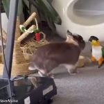 - インコにエサを食べられたウサギが抗議をしようと近づくも…切ない結果に終わる