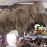 - 野生のゾウがタイの食料品店に侵入して無銭飲食
